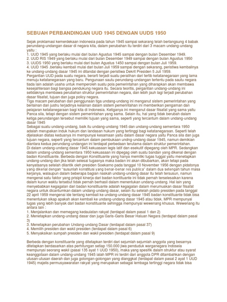 Karena indonesia ingin berdiri sendiri sebagai suatu negara yang mengurus rumah tangganya sendiri tanpa campur tangan negara lain. · mukadimah terdiri dari 4 alinea disebutkan: Uud 1945 sebagai konstitusi di indonesia yang selama ini disakralkan dan tidak boleh diubah, kini telah mengalami beberapa perubahan. Secara umum constitusi, pengertian konstitusi yaitu adalah keseluruhanperaturan, baik yang tertulis. Konstitusi ris,reformasi, republik indonesia, ris, uud 1945, uud 1945 amandemen, uuds 1950a.